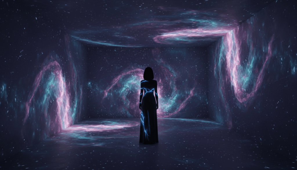 Dobrym przykładem nowej generacji ekspozycji jest immersyjna wystawa Artificial Dreams realizowana w Melt Museum. Projekt wykorzystuje algorytmy sztucznej inteligencji do generowania futurystycznych kompozycji wyświetlanych w technologii 360°.
